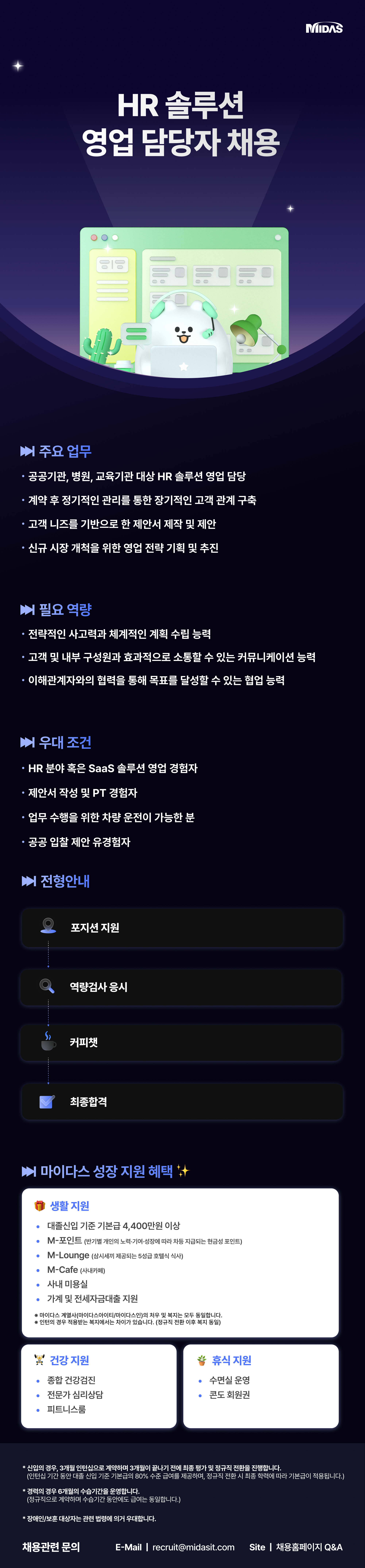 마이다스인 HR솔루션 공공사업 영업담당자 채용 (전공무관 ~ 12/21)